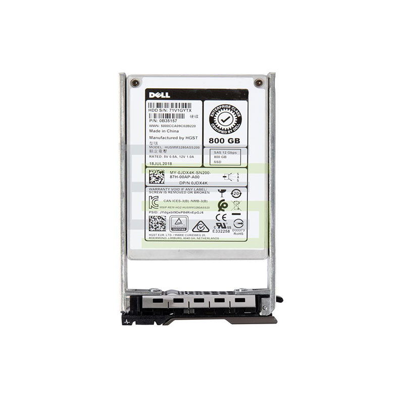 The Dell is an 800GB SAS 12Gbps 2.5-inch internal solid-state drive engineered for enterprise environments that require high-speed, reliable storage. Built with MLC NAND flash technology, it delivers consistent low-latency performance and sustained throughput, making it suitable for mixed-use workloads, virtualization, databases, and other demanding server applications.Featuring a 12Gbps SAS interface, the 0JDX4K ensures fast, predictable data transfers and supports dual-port connectivity, providing redundancy and continuous availability in mission-critical enterprise storage systems. Its 2.5-inch form factor supports hot-swap deployment, allowing easy installation, maintenance, or replacement within Dell PowerEdge servers and storage arrays without interrupting operations.The drive includes enterprise-grade reliability features, such as power-loss protection, advanced error correction (ECC), and wear-leveling technology, ensuring data integrity and consistent performance under sustained workloads.