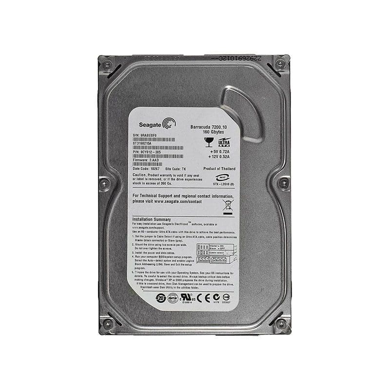 Seagate Barracuda 7200.10 160GB 7200RPM ATA-100 2MB Cache 3.5-inch Internal Hard Drive
